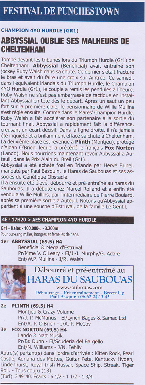 ABBYSSIAL GAGNANT DU CHAMPION 4YO HURDLE (GR1)
