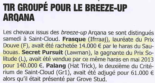 résultats de Breeze-up résultats de chevaux Haras du Saubouas