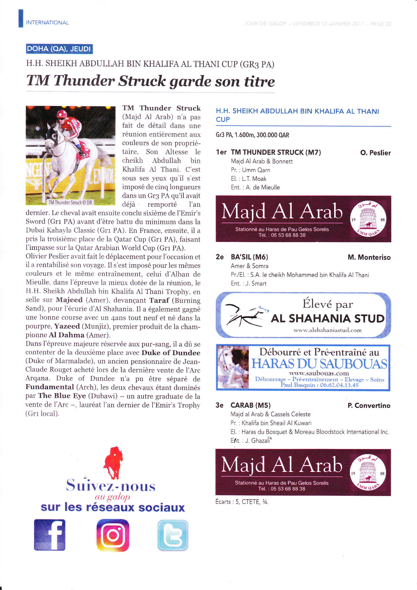 BA’SIL 2EME DU PRIX HH SHEIKH ABDULLAH BIN KHALIFA AL THANI CUP (GR3 PA) À DOHA