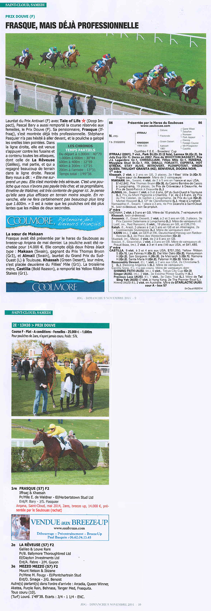 Haras du Saubouas, résultats de Breeze-up chevaux résultats France résultats de chevaux 2 ans