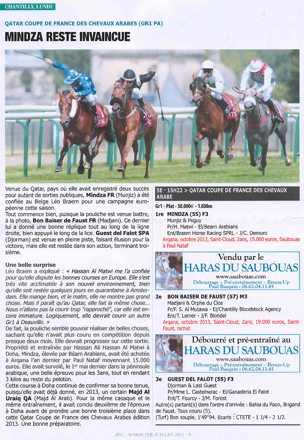 UNE TRÈS BELLE JOURNÉE À DOHA POUR LES ÉLÈVES DU HARAS DU SAUBOUAS ! MON'NIA, ATEEJ ET TAREK DU SOLEIL GAGNANT. AL NAAMA, SECONDE