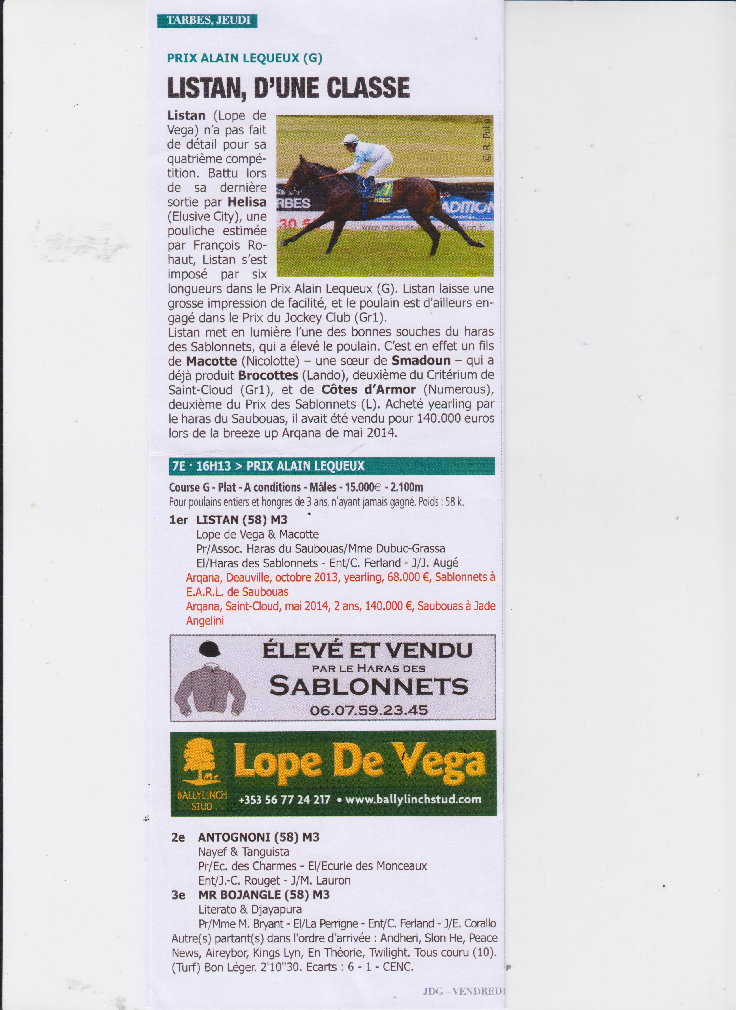 UN ETE FRUCTUEUX POUR LE HARAS DU SAUBOUAS… DE NOMBREUX BLACK TYPE