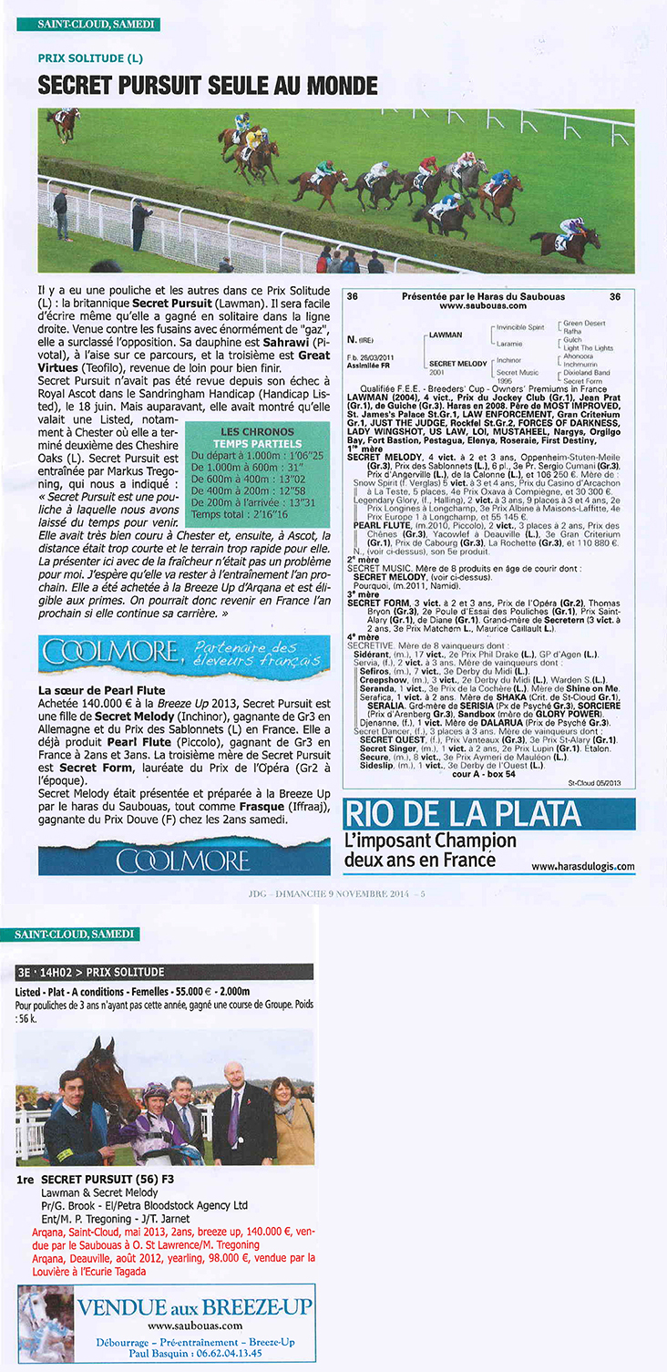SECRET PURSUIT GAGNANTE DU PRIX SOLITUDE (LISTED) VENDUE PAR LE HARAS DU SAUBOUAS