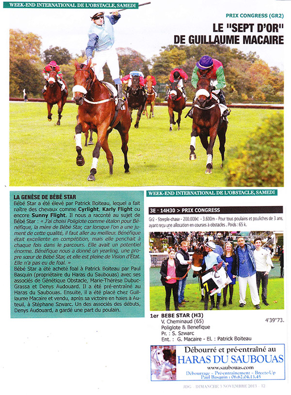 TRIPLE DE GROUPE 1 POUR LE HARAS DU SAUBOUAS